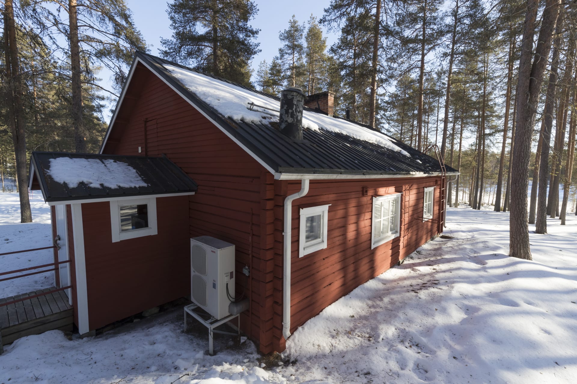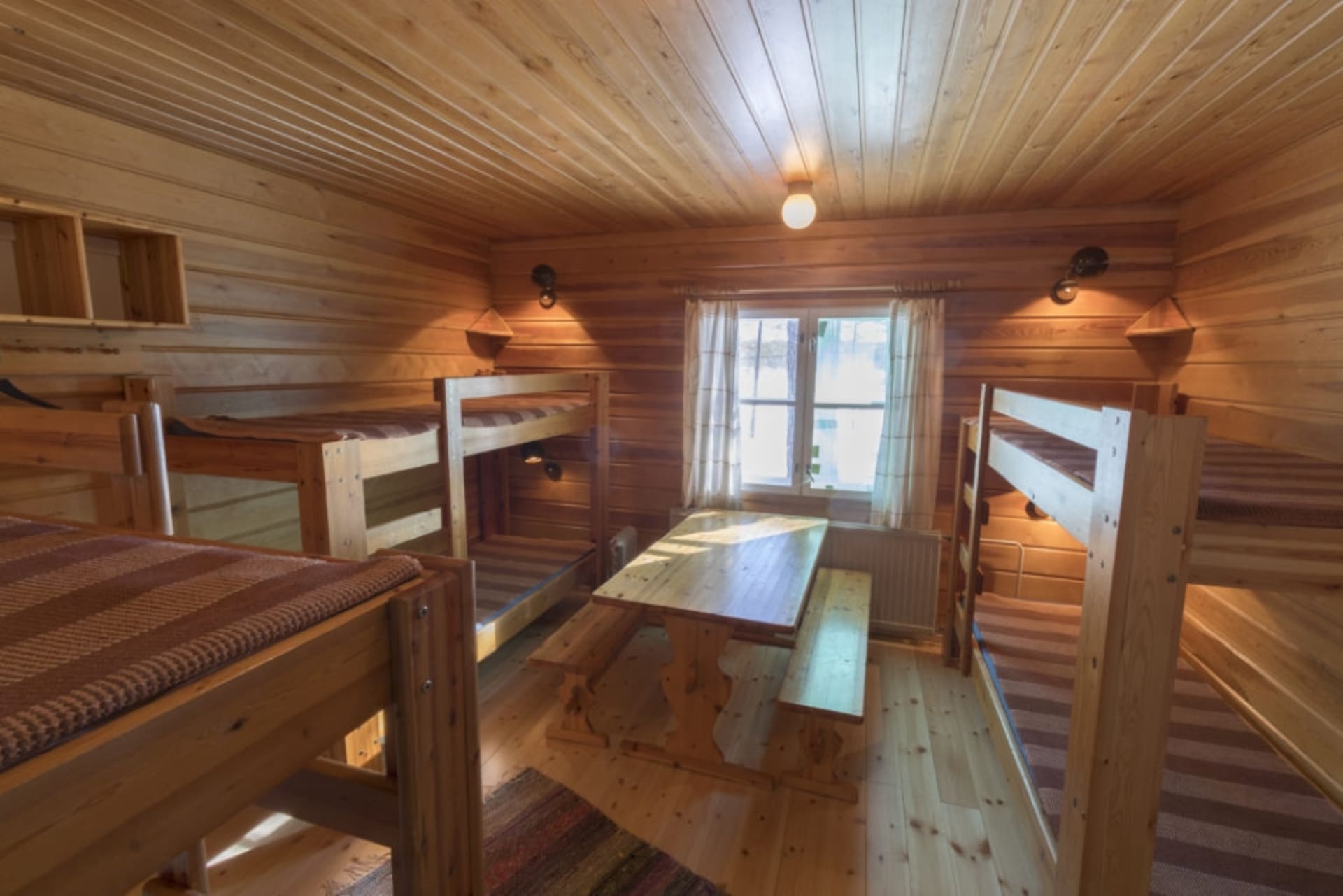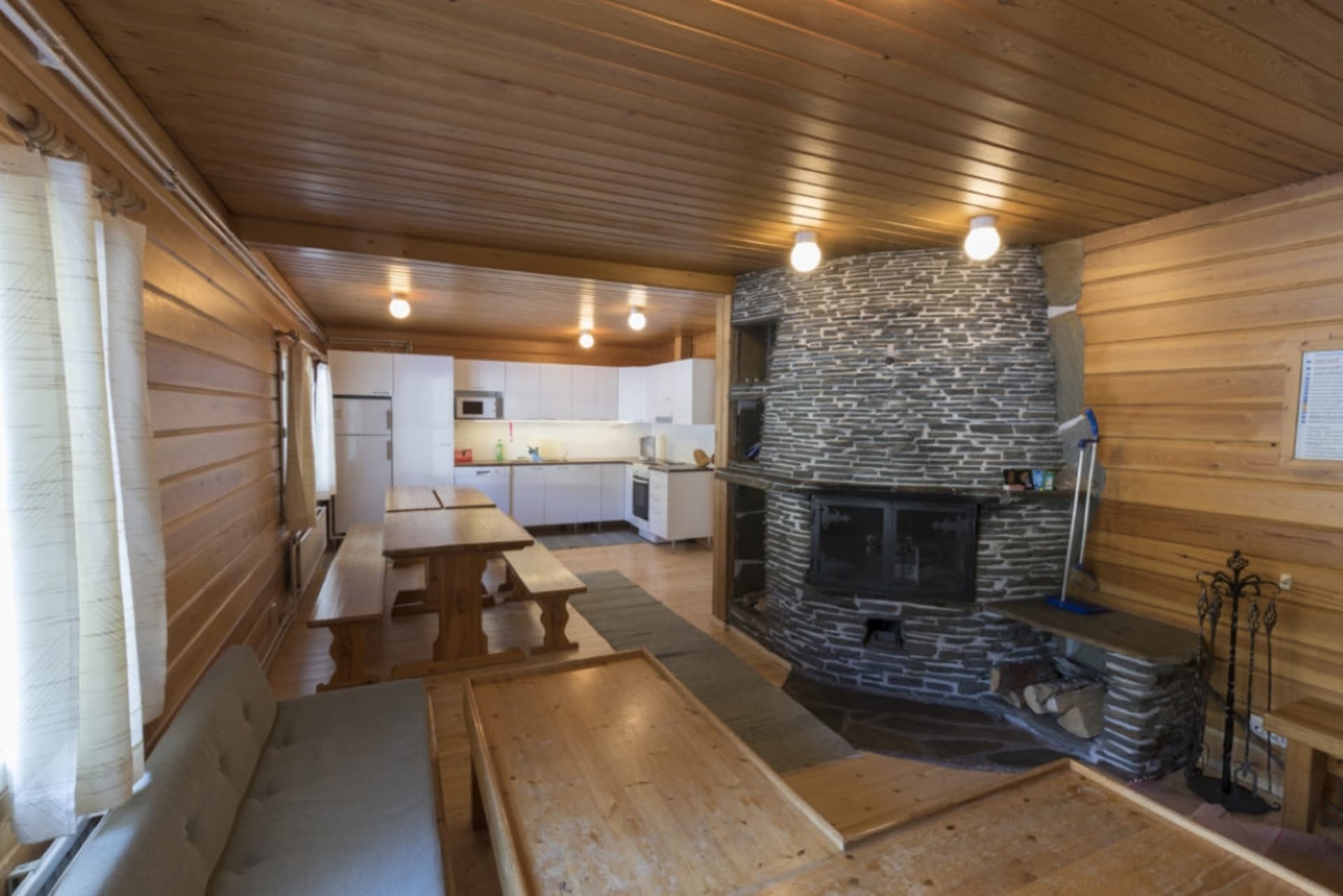 Teräväpää has 2 bedrooms, a kitchen and living room, shower and toilet. Facilities include an ice-cooler, electric stove, dishwasher and microwave oven. Central heating ensures comfort during all seasons, in addition to which a fireplace creates warmth and atmosphere. A lakeside sauna, swimming beach and boats are shared with Pääpirtti lumberjack’s house, located in the same yard area. There is also an outdoor grill area, outdoor fireplace and a smoking oven for shared use.