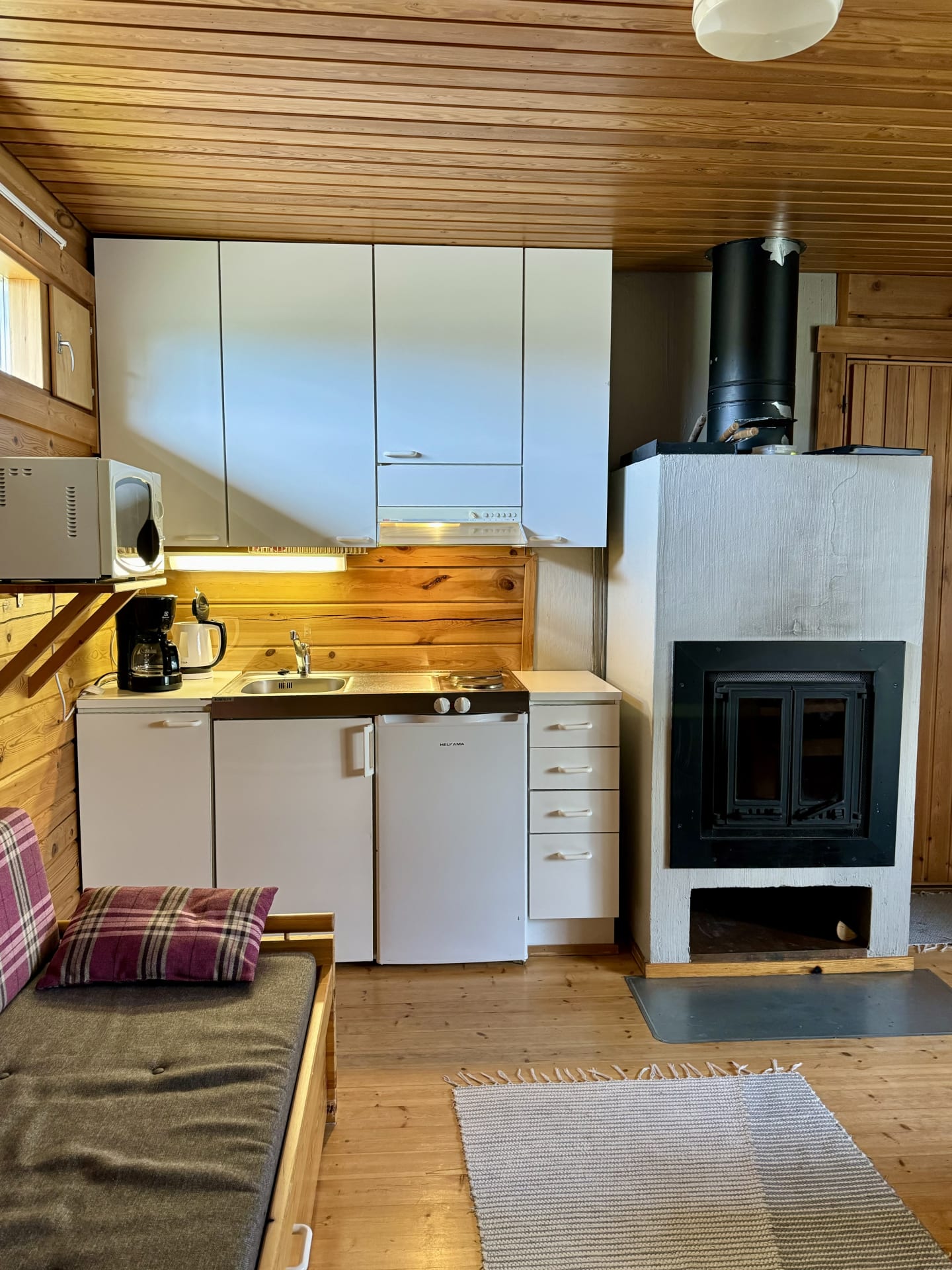 The cottage has a fireplace, fridge, electric stove, microwave, coffee maker, kettle and TV. The cottage is equipped with cutlery, cooking utensils, blankets and pillows. Bed linen are available at an additional cost.