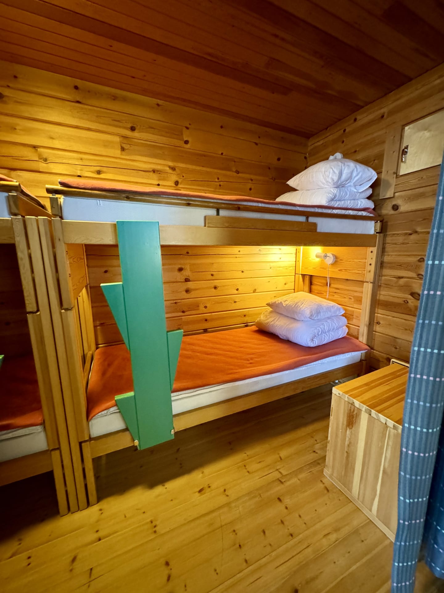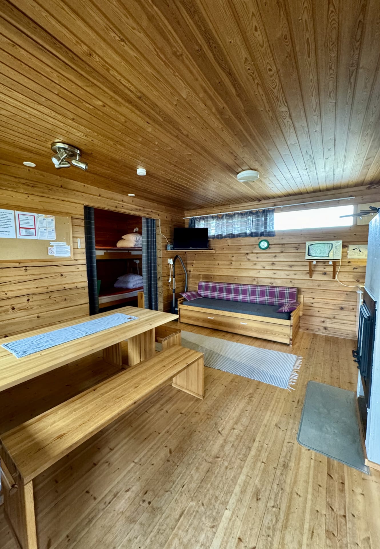 The cottage has a kitchen-living room with a sofa bed and a sleeping alcove with bunk beds for four people. It also has its own toilet, shower and sauna.