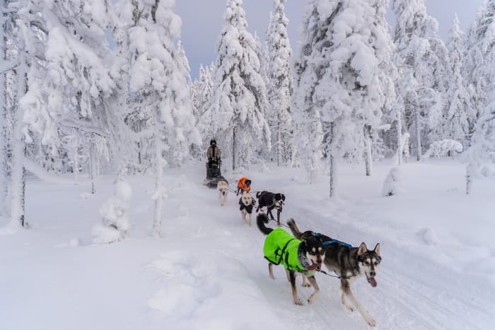 Have you ever dreamed of driving your own husky sled through a breathtaking winter wonderland? On this tour, you can enjoy the thrill of leading your own team of huskies through the silent, pristine, snowy landscapes of north-eastern Finland. You will learn about the daily life of the huskies and help look after them. The highlight of this trip is an overnight stay in a rustic, authentic wilderness cabin.