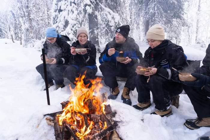 In the evening, you’ll have your first chance to unwind in a traditional Finnish sauna. For those feeling adventurous, ice swimming is also an option - just breathe deeply and take a dip in the icy water! It may sound cold and unusual, but afterward, you'll be left with an invigorating warmth that Finns swear by.
