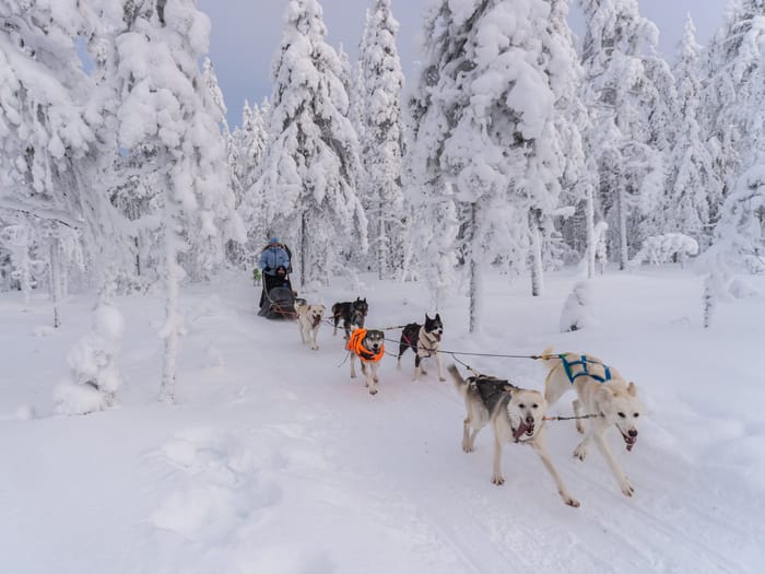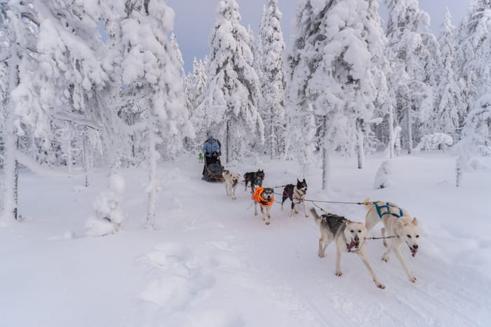 The last activity is one of the week’s highlights – a husky safari. After breakfast, you'll take a 1-hour transfer to the husky kennel. Upon arrival, the owner will greet you and share insights into the life and training of the huskies, followed by a sled-driving lesson. Then, it’s time to head into the wilderness! You’ll glide through snow-covered forests and across frozen lakes, soaking in the pure nature and tranquility. Two people will share a sled, pulled by 4–6 dogs, and can take turns driving. During the safari, you’ll stop for an outdoor lunch. (Activity duration: 4–5 hours, covering 20–30 km).