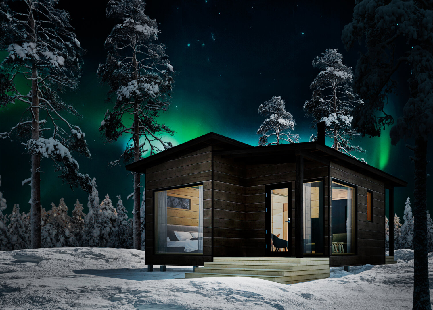 Hossan Lumossa pääset yöpymään uusissa revontulimökeissä, joiden suuret ikkunat ja tunnelmallinen sisustus tekevät taivaan valojen katselusta unohtumattoman elämyksen.