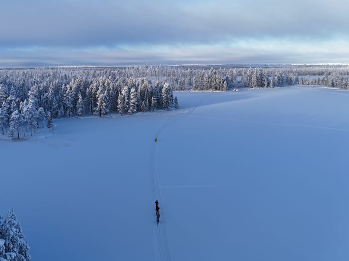 Aika pakata tavarat ja sanoa hyvästit Martinselkosen isäntäväelle. Tänään reittimme vie halki luonnonsuojelualueen avosoiden ja kuusimetsien. Talvinen luonto ympärillämme kuiskii hiljaisuuttaan; rauhallisuus on lähes mykistävää. Lounastauon vietämme jälleen tulilla ja energiatäydennyksen jälkeen sujuttelemme viimeiset kilometrit majapaikkaamme Arolaan. Illan ohjelmassa tutut kuviot – sauna, mukavaa seurustelua ja talon emäntien paikallisista raaka-aineista loihtima herkullinen päivällinen, joka tarjoillaan viihtyisässä hirsipirtissä.