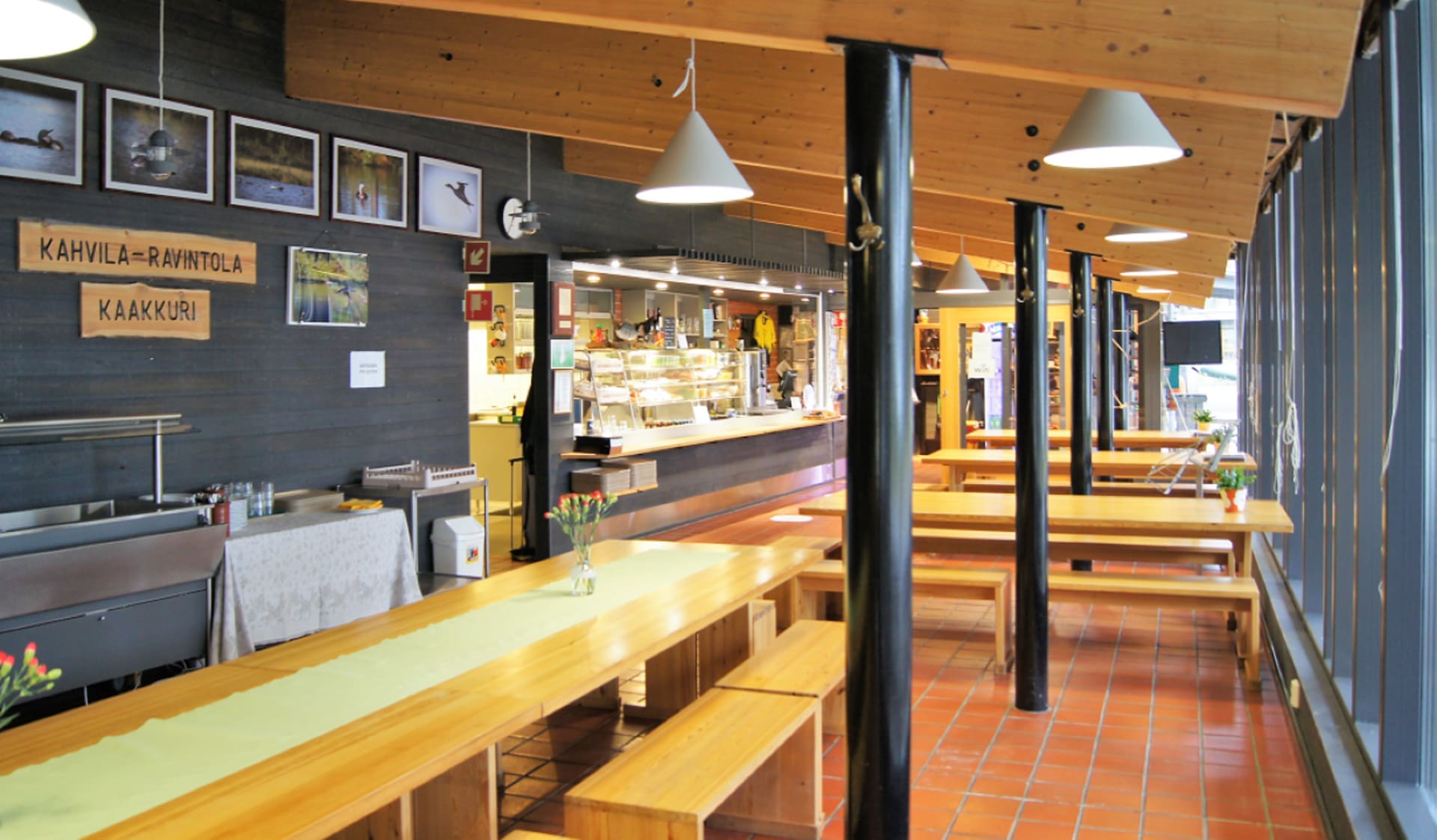 Keskuksen kahvila-ravintola palvelee kesäkaudella tarjoten lounasta, kahvilatuotteita ja virvokkeita. Ruokailu onnistuu mukavasti myös järvinäköalallisella terassilla.